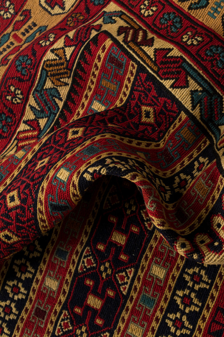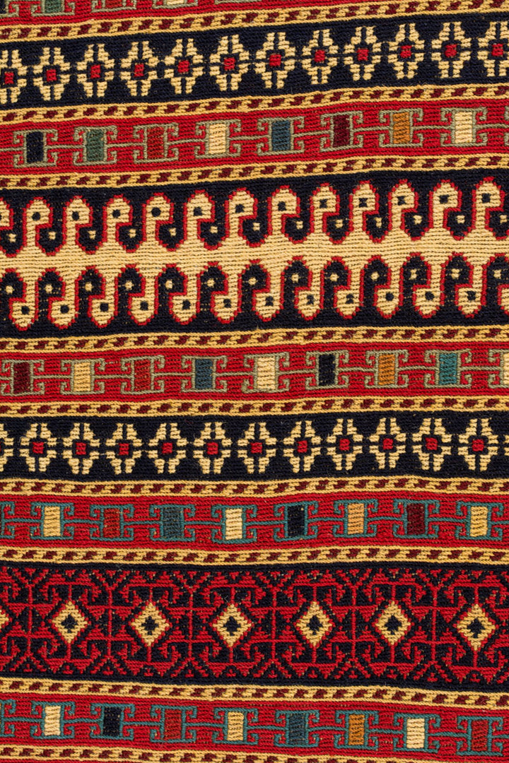 The Azerbaijani rug is a traditional handmade textile of various sizes, with dense texture and a pile or pile-less surface. The patterns are characteristic of Azerbaijan's many rug weaving regions. Traditionally, these rugs were used in Azerbaijan to cover floors, decorate interior walls, sofas, chairs, beds and tables.