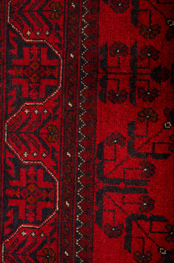 Afghan Khal Mohammadi carpets are crafted in the region around Kunduz, a prominent trading center in northern Afghanistan. These rugs are known for their rich colours and intricate designs, reflecting the region's cultural heritage and creativity.