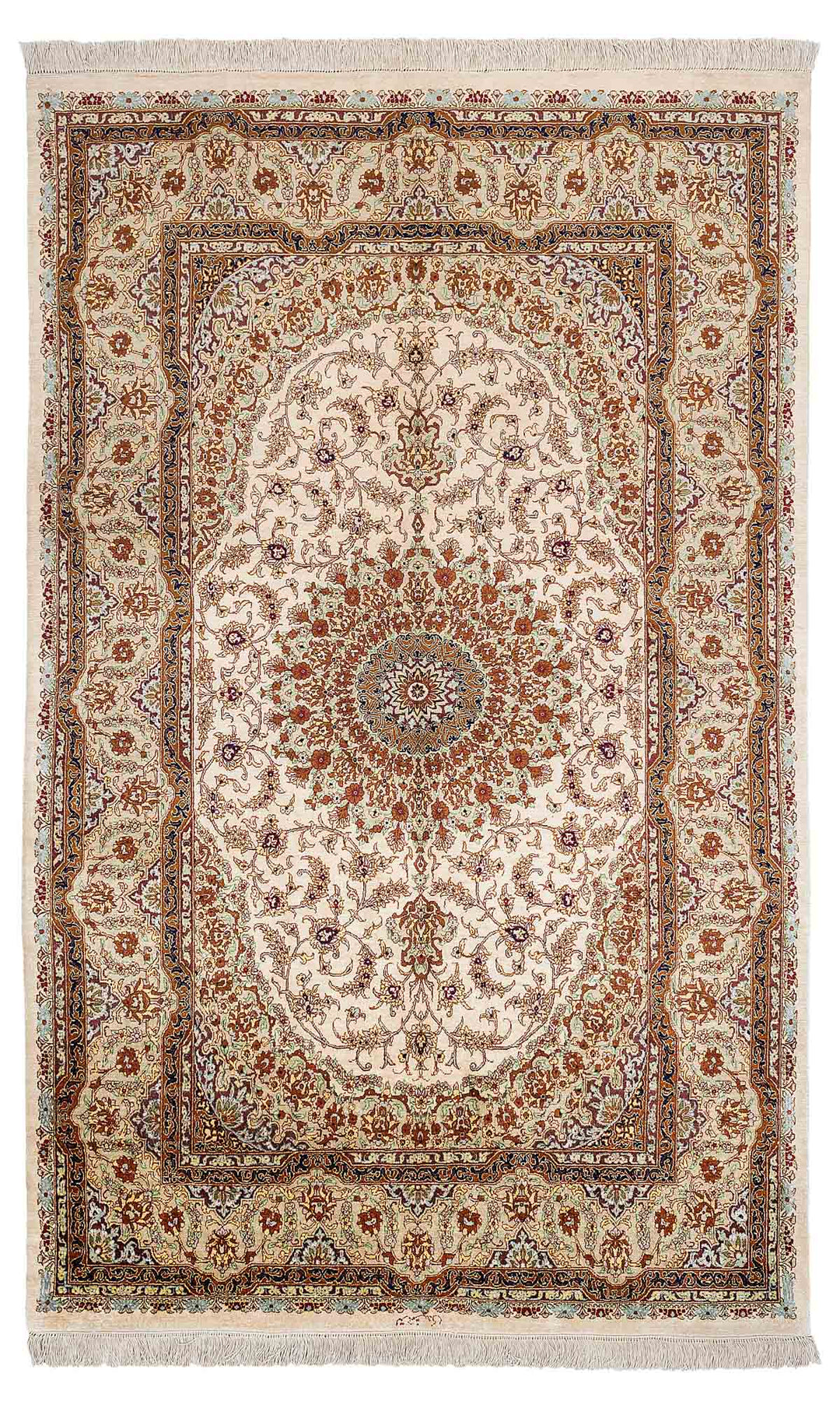 Made from 100% genuine silk. The majority of this range is Persian in origin. The are among the most luxury of handmade Persian rugs.
