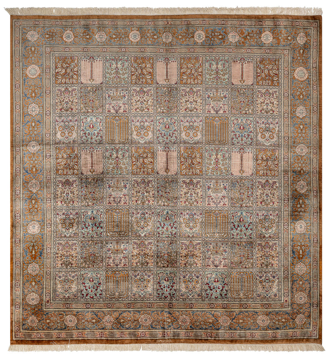 Most high-quality Persian silk rugs are crafted in the city of Qum, where skilled artisans meticulously hand-knot each piece. These rugs feature a foundation made entirely of pure silk, with both the warp and weft composed of silk, enhancing their luxurious feel and sheen. Despite their relatively shorter history, Qum silk rugs have become among the most sought-after Persian rugs, celebrated for their superior craftsmanship and rich variety of patterns. The artists in Qum skillfully adapt and reinterpret beautiful designs and motifs from other rug-producing regions, resulting in exquisite rugs that reflect both tradition and artistry.