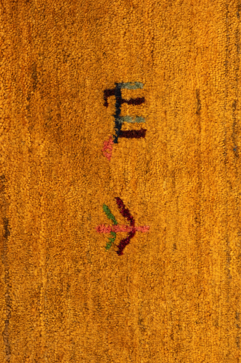 Gabbeh (sometimes referred to as Gabba) rugs are tribal Persian carpets distinguished by their abstract designs, which often feature minimal yet playful geometric motifs. These rugs are popular among the Kurdish, Luri, and Qashqai tribes residing in the Zagros Mountains. Gabbeh rugs are notably thicker than other Persian rugs, typically measuring around 7mm in thickness. This substantial construction adds to their durability and comfort, making them ideal for a variety of settings.
