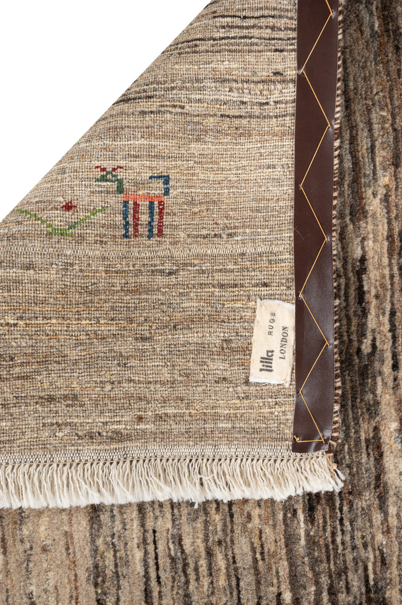 Gabbeh (sometimes referred to as Gabba) rugs are tribal Persian carpets distinguished by their abstract designs, which often feature minimal yet playful geometric motifs. These rugs are popular among the Kurdish, Luri, and Qashqai tribes residing in the Zagros Mountains. Gabbeh rugs are notably thicker than other Persian rugs, typically measuring around 7mm in thickness. This substantial construction adds to their durability and comfort, making them ideal for a variety of settings.