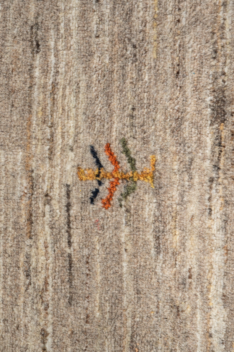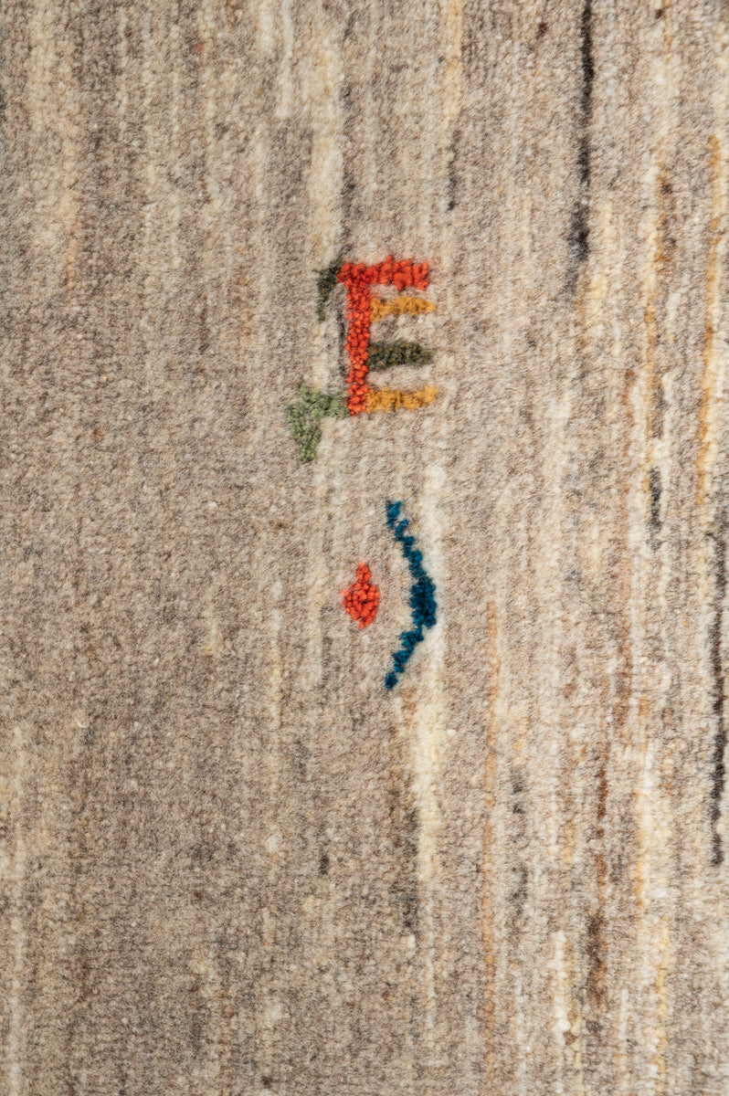 Gabbeh (sometimes referred to as Gabba) rugs are tribal Persian carpets distinguished by their abstract designs, which often feature minimal yet playful geometric motifs. These rugs are popular among the Kurdish, Luri, and Qashqai tribes residing in the Zagros Mountains. Gabbeh rugs are notably thicker than other Persian rugs, typically measuring around 7mm in thickness. This substantial construction adds to their durability and comfort, making them ideal for a variety of settings.