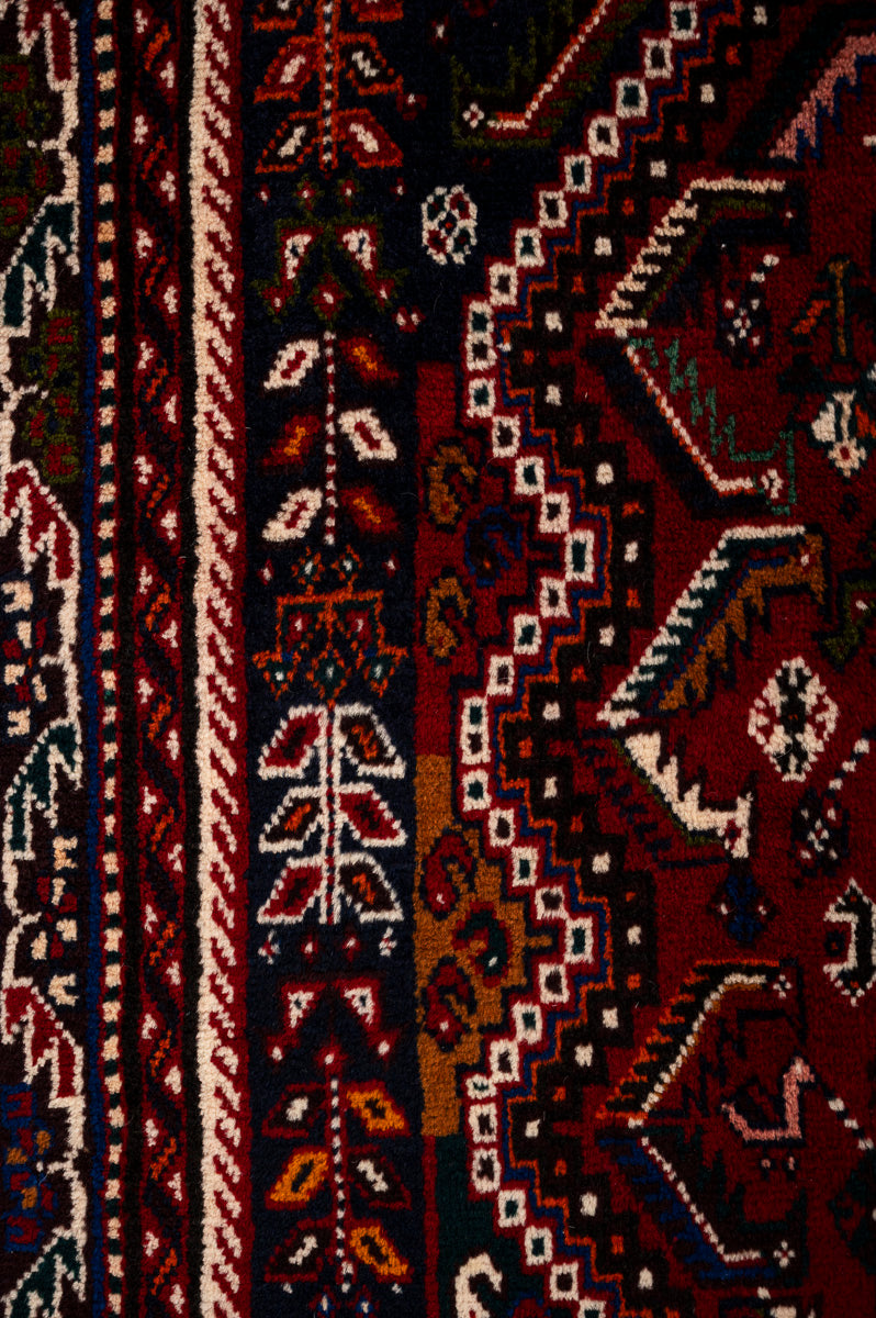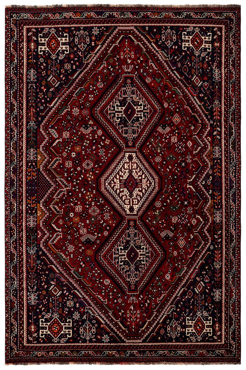 The Qashqai are renowned for their exquisite pile carpets and other woven wool products, often referred to as "Shiraz" due to the city’s historical role as a major marketplace for these rugs. The wool sourced from the mountains and valleys near Shiraz is particularly soft and vibrant, absorbing deep colours that enhance the beauty of each piece. Qashqai rugs are celebrated as "probably the most famous of all Persian tribal weavings," showcasing intricate designs that reflect the rich cultural heritage of the Qashqai tribe.