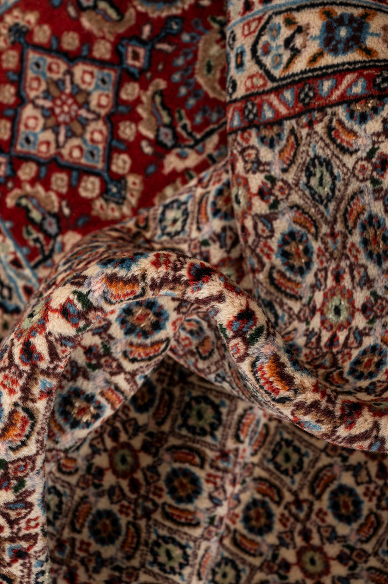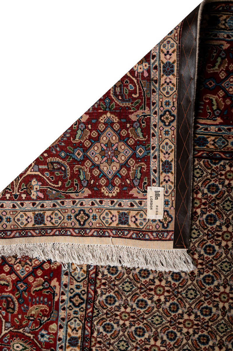 Persian Moud (or Mood) handmade rugs come from a village southeast of Birjand. These rugs are highly respected and renowned for their beauty and intricate detailing. Known for their busy patterns, Moud rugs create a sense of depth, making rooms appear larger and adding a striking element to any space.