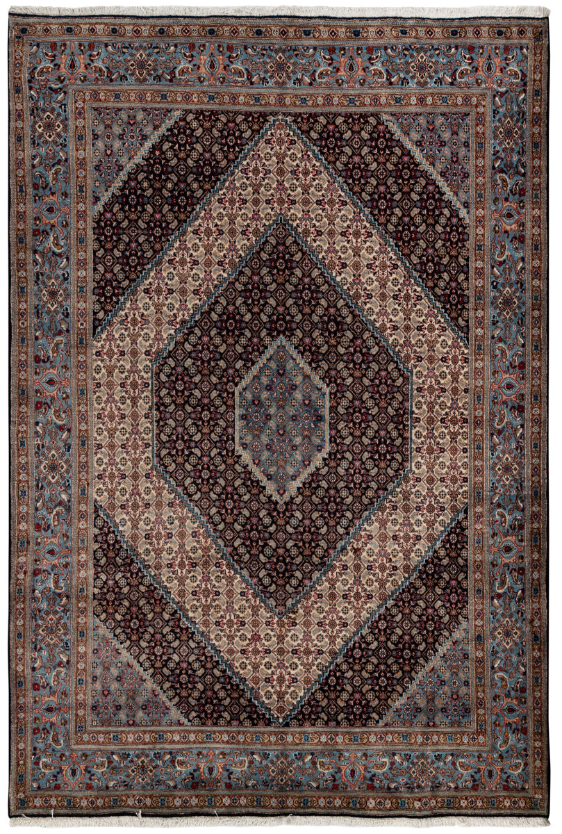 Persian Moud (or Mood) handmade rugs originate from a village to the southeast of Birjand in east Iran. They are super well respected and known to be amongst the most beautiful and detailed of Persian rugs. They are known for their busy patterns and for making rooms appear bigger by giving extra depth.