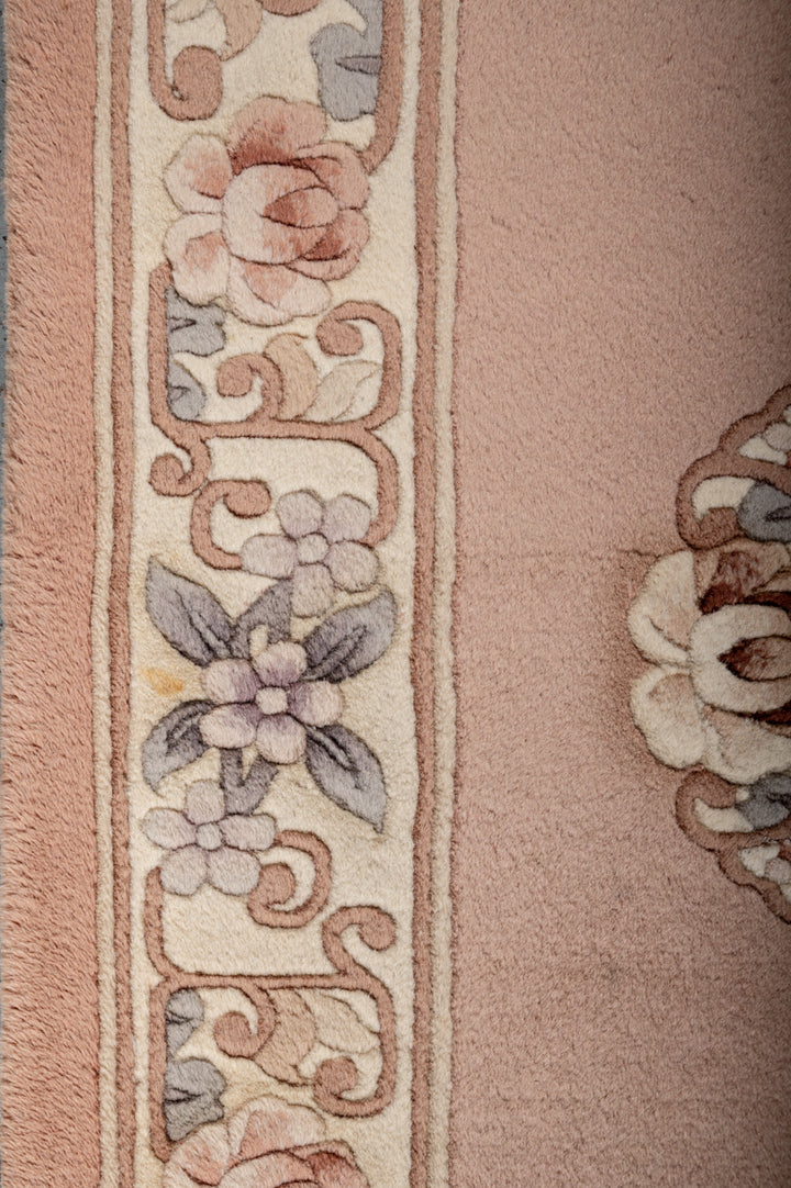 Aubusson is a town in central France, on the Creuse River. It has been globally well known for its weavings/ tapestries, since the 15th century. They have become known as some of the most elegant and high end rugs around. These French designs are rich in history and have become sought after within the interior design industry for years. Finding an original French antique Aubusson today is not only harder to come by, but has a price for collectors. Talented weavers in China have started to produce Aubusson designs, like this one here. They are incredibly well made (100% by hand) and are far more price accessible.